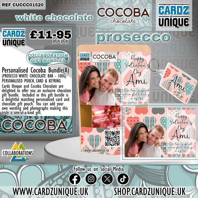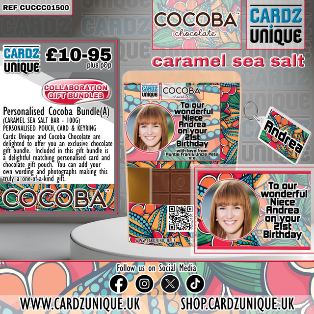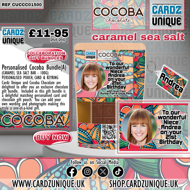 We are delighted to be working in collaboration with Cocoba Chocolate offering an exclusive range of personalised chocolate gifts, our one-of-a-kind collaboration includes custom-made, super special and limited edition products, completely bespoke and available with any image, photo and message.