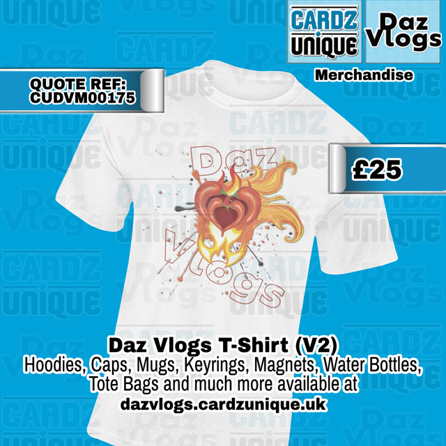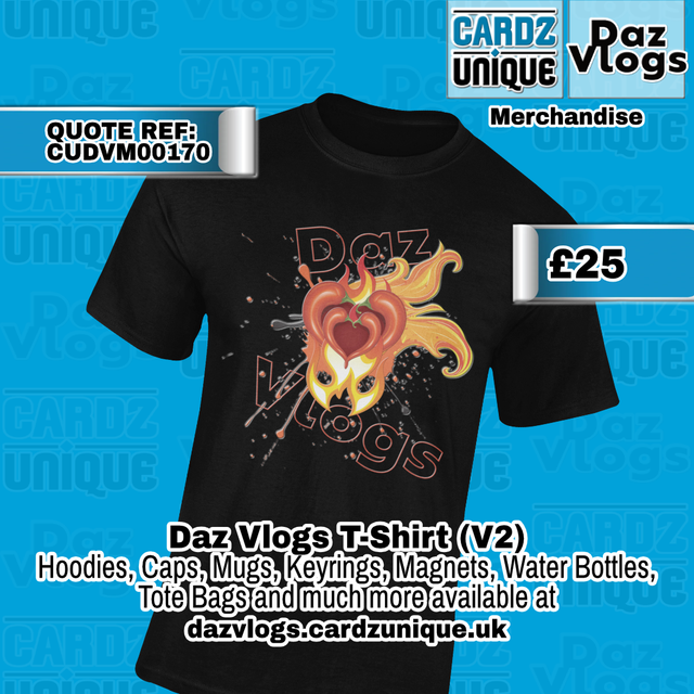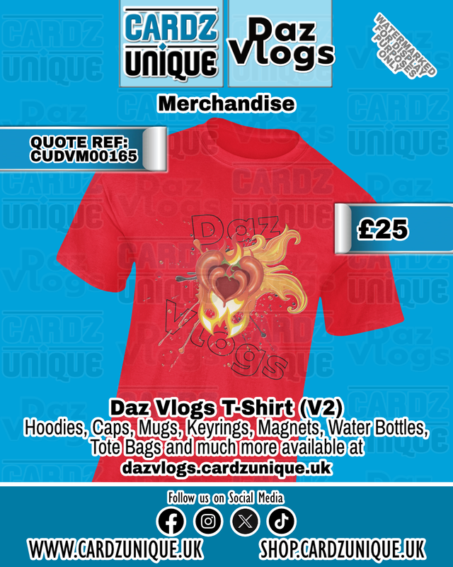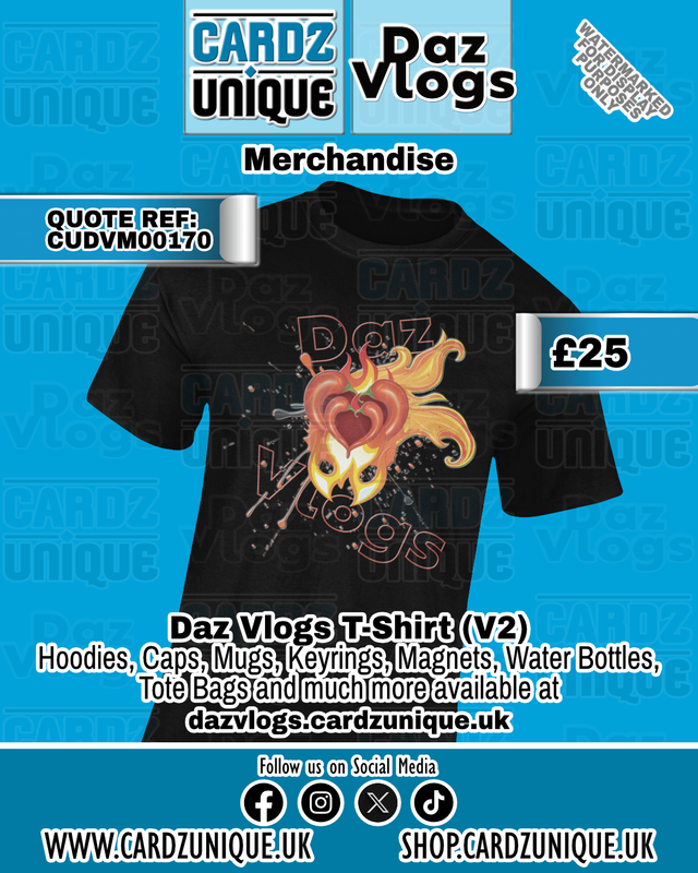 We are delighted to be working in collaboration with Daz Vlogs offering an exclusive range of bespoke merchandise from the 'Merchandise by Cardz Unique The Collection' offering one-of-a-kind, custom-made and super special and limited edition products, completely bespoke and available with any image, brand or message.