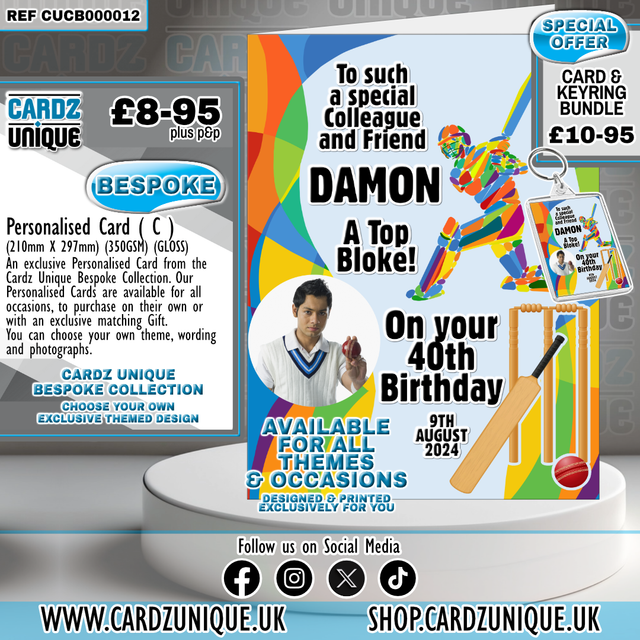 It's time to treat your special person to a unique and exclusive personalised card. Why? Because it's one-of-a-kind, custom-made and super special. It is completely bespoke, available with any theme, we will incorporate your special person's hobbies and interests too. We will also add any messages to truly show how much you care, both inside and out. Plus, the quality is top-notch, so your card will last a long time. Add some memorable photographs to make your card extra special.