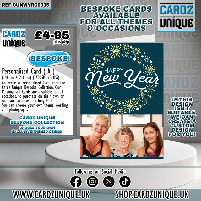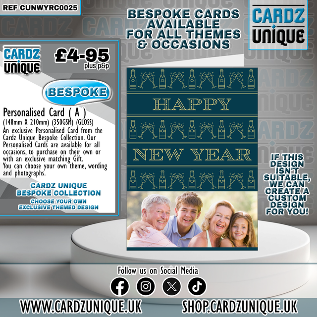 It's time to treat your special person to a unique and exclusive personalised card. Why? Because it's one-of-a-kind, custom-made and super special. It is completely bespoke, available with any theme, we will incorporate your special person's hobbies and interests too. We will also add any messages to truly show how much you care, both inside and out. Plus, the quality is top-notch, so your card will last a long time. Add some memorable photographs to make your card extra special.